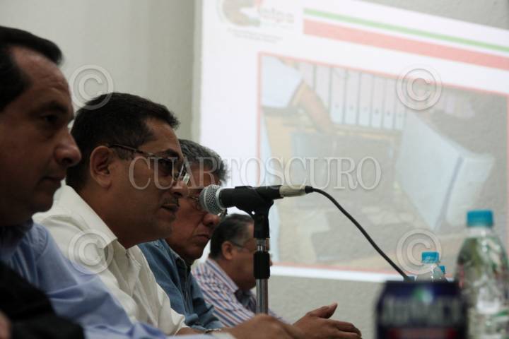 JALPA DE MÉNDEZ, TABASCO, 22MARZO2010.- El director de la contraloria municipal Fernando Pedrero, realizo una denuncia de caracter ministerial en contra de los ex ediles Jesús Selván y Williams Pedrero. Lo anterior acontece en la casa de la cultura de esta cabecera municipal; donde revela el contralor que la deuda del desfalco asciende a más de 26 millones de pesos y que tal acción mantiene al municipio en próximo embargo por un banco. FOTO: MARCO POLO GUZMÁN HERNÁNDEZ/CUARTOSCURO.COM