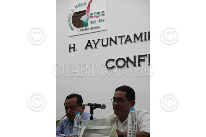 JALPA DE MÉNDEZ, TABASCO, 22MARZO2010.- El director de la contraloria municipal Fernando Pedrero, realizo una denuncia de carácter ministerial en contra de los ex ediles Jesús Selván y Williams Pedrero. Lo anterior acontece en la casa de la cultura de esta cabecera municipal; donde revela el contralor que la deuda del desfalco asciende a más de 26 millones de pesos y que tal acción mantiene al municipio en próximo embargo por un banco. FOTO: MARCO POLO GUZMÁN HERNÁNDEZ/CUARTOSCURO.COM