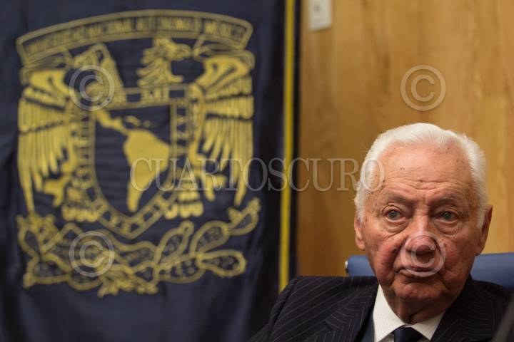 CIUDAD DE MÉXICO, 21NOVIEMBRE2017.- Enrique González Pedrero, doctor Honoris Causa 2017 por la Universidad Nacional Autónoma de México (UNAM) encabezó la conferencia Hannah Arendt y la política, en el auditorio Pablo González Casanova de la Facultad de Ciencias Políticas y Sociales de la universidad. FOTO: GALO CAÑAS /CUARTOSCURO.COM