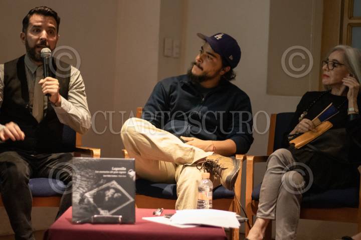 Juan Pablo Cardona, Pedro Anza y Claudia Canales en la presentación del libro Lagunilla: Los escenarios del gran regateo en el Centro de la Imagen.