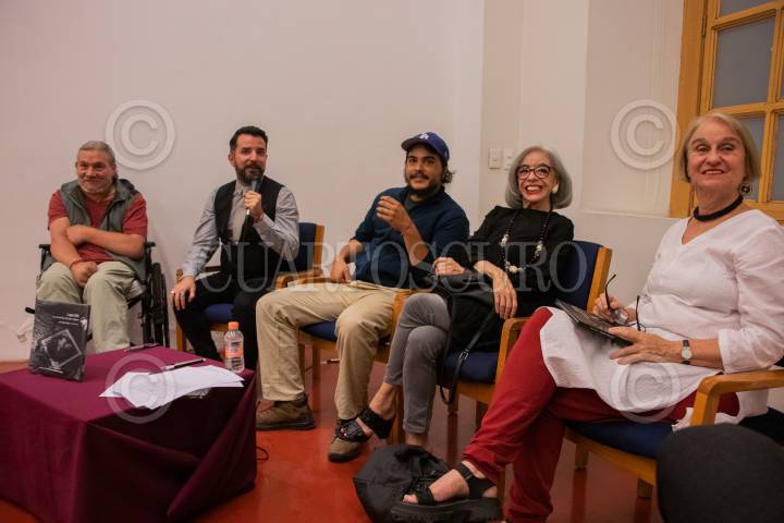 Pedro Tzontémoc, Juan Pablo Cardona, Pedro Anza, Claudia Canales y Margarita de Orellana en la presentación del libro Lagunilla: Los escenarios del gran regateo en el Centro de la Imagen.