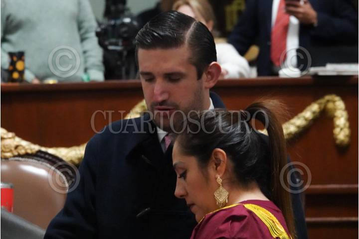 CIUDAD DE MÉXICO, 23DICIEMBRE2024.- Los diputados Pedro Haces Lago y Xóchitl Bravo Espinosa conversaron durante la Sesión Ordinaria en el Congreso Local. FOTO: GRACIELA LÓPEZ/CUARTOSCURO.COM