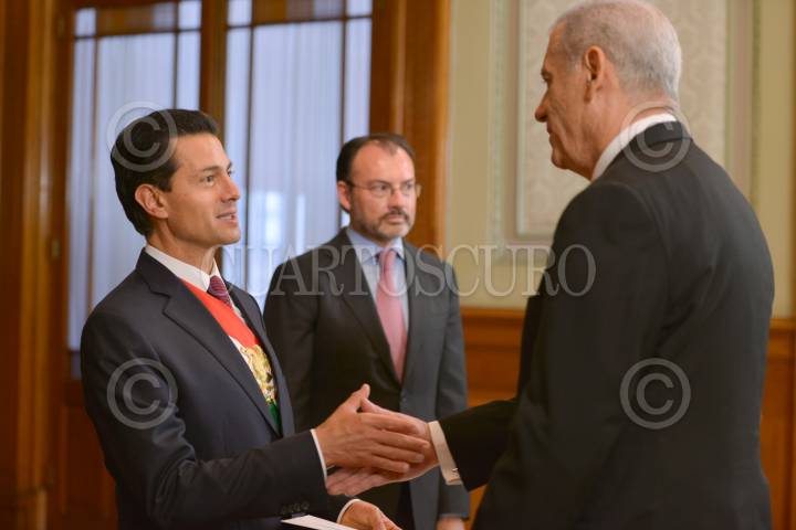 CIUDAD DE MÉXICO, 11ABRIL2017.- En el Palacio Nacional, el Presidente de México, Enrique Peña Nieto, recibió y dialogó con Pedro Juan Núñez Mosquera, quien le entregó las Cartas Credenciales que le acreditan como Embajador de la República de Cuba en nuestro país. FOTO: PRESIDENCIA /CUARTOSCURO.COM