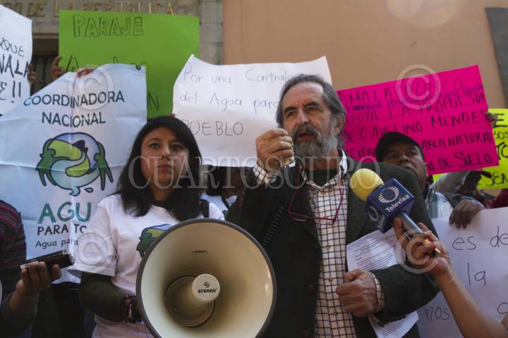 CIUDAD DE MÉXICO, 16ENERO2017.- Pedro Moctezuma Barragán, especialista de la UAM, advirtió sobre los peligros hidricos que corre la capital si se llegarán a privatizar sus aguas, junto con varios vecinos de diferentes delegaciones se manifestaron afuera de la vieja casona de Xicohténcatl, en donde se discute y elabora la Constitución de la Ciudad de México. FOTO: MOISÉS PABLO /CUARTOSCURO.COM