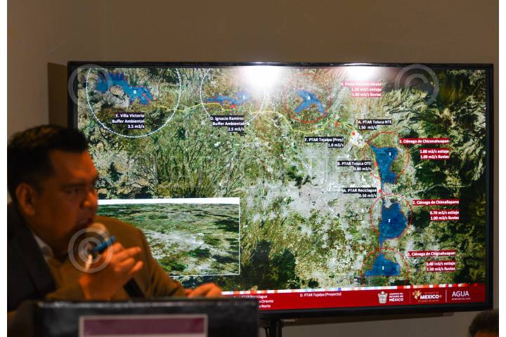 METEPEC, ESTADO DE MÉXICO, 22NOVIEMBRE2023.- Pedro Moctezuma Barragán Secretario del Agua anuncio el Plan Hídrico Colaborativo 2023-2029 que tiene la finalidad de garantizar la gestión equitativa y sustentable del agua, y se definirán las acciones que se llevarán a cabo frente a la crisis de agua que se vive, en esté plan participarán universidades públicas del Edoméx; acompañado por Miguel Ángel Hernández Espejel Secretario de Educación, Ciencia, Tecnología e Innovación, rectores de instituciones educativas como Carlos Eduardo Barrera rector de la UAEMÉX, José Antonio de los Reyes Heredia, rector de la UAM, entre otros. FOTO: CRISANTA ESPINOSA AGUILAR /CUARTOSCURO.COM