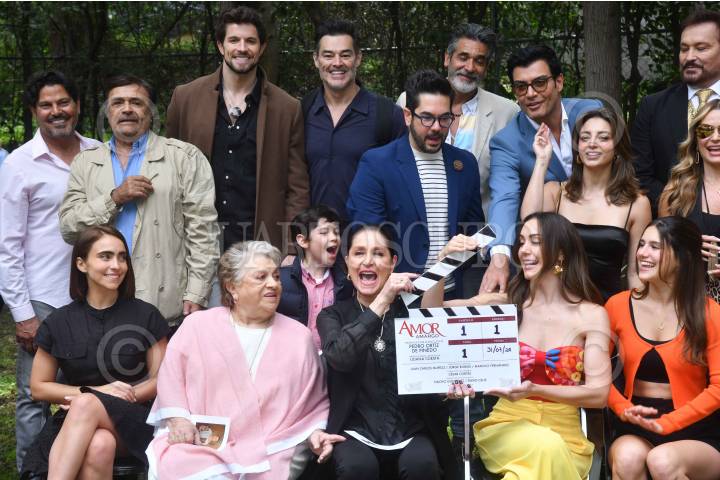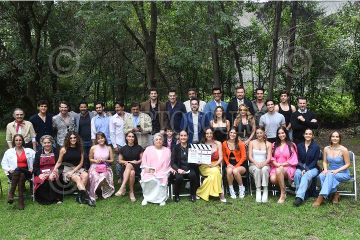 ATIZAPÁN DE ZARAGOZA, ESTADO DE MÉXICO, 31JULIO2024.- Ceremonia de "claquetazo" de la nueva telenovela de Televisa "Amor Amargo" de Pedro Ortiz de Pinedo, encabezada por Daniela Romo, Ana Belena, Arturo Peniche, y Andrés Palacios. FOTO: MARIO JASSO/CUARTOSCURO.COM