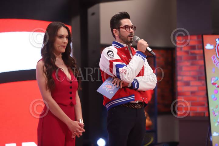 CIUDAD DE MÉXICO, 03DICIEMBRE2024. Ale Müller y él productor Pedro Ortiz de Pinedo durante la presentación de la serie La CQ Nuevo Ingreso, en Instalaciones de Televisa San Ángel. FOTO: EDGAR NEGRETE LIRA/CUARTOSCURO.COM