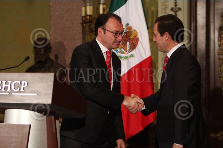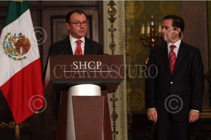 MÉXICO, 23SEPTIEMBRE2015.- Luis Videgaray, secretario de Hacienda y Crédito Público nombró a Pedro Pablo Treviño como el nuevo titular de Lotería Nacional y Pronósticos Deportivos en la sala panamericana ubicada en las instalaciones de la Secretaria de Hacienda y Crédito Público. FOTO: ISABEL MATEOS / CUARTOSCURO.COM
