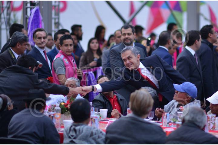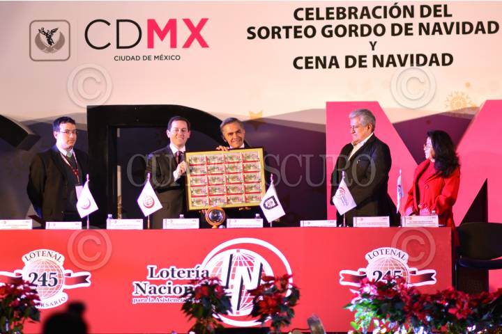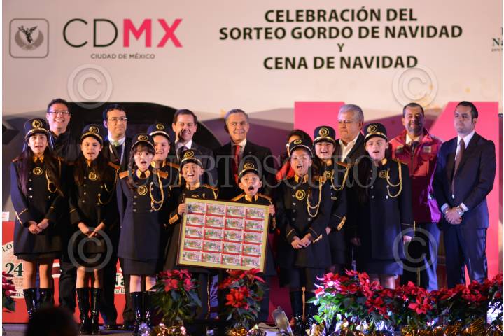 MÉXICO, D.F.- Miguel Ángel Mancera, jefe de gobierno de la Ciudad de México y Pedro Pablo Treviño, director de la Lotería Nacional, presidieron la realización del Magno sorteo del 24 de diciembre de la Lotería Nacional en el Zócalo capitalino. Al final del evento el gobierno del Distrito Federal ofreció una cena de noche buena para las personas en condición de calle y público en general. Foto: ADOLFO VLADIMIR /CUARTOSCURO.COM