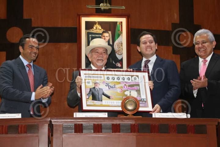 CIUDAD DE MÉXICO, 10AGOSTO2016.-El actor Sergio Corona fue homenajeado por la lotería nacional con un billete conmemorativo por sus 70 años de trayectoria artística, dicho homenaje fue encabezado por el director de la LOTENAL, Pedro Pablo Treviño Villareal. FOTO: SAÚL LÓPEZ /CUARTOSCURO.COM