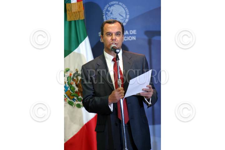 MEXICO, D.F. 20JUNIO2005.- Enrique Aranda Pedroza, durante su intervención en la ceremonia donde asuminó el cargo como subsecretario de normatividad de medios en gobernación. FOTO: Nelly Salas/CUARTOSCURO.COM