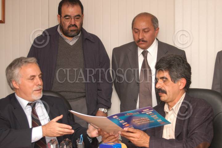 MÈXICO, D.F. 16ENERO2006.- Marcelo Castro, Director de la oficina de la Organización Internacional del Trabajo; recibe de manos de Daniel Trujillo Pedroza, Secretario General de la Federación de Sindicatos y Organizaciones nacionales de trabajadores mexicanos; una solicitud para que la OIT intervenga en el caso de la Cooperativa Pascual.