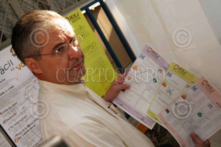 GUADALAJARA,JALISCO.-02JULIO2006.- El candidato a gobernador de Jalisco por la alianza PRD-PT, Juan Enrique Ibarra Pedroza, en el momento de emitir sus votos. FOTO: Javier Hoyos/CUARTOSCURO.COM