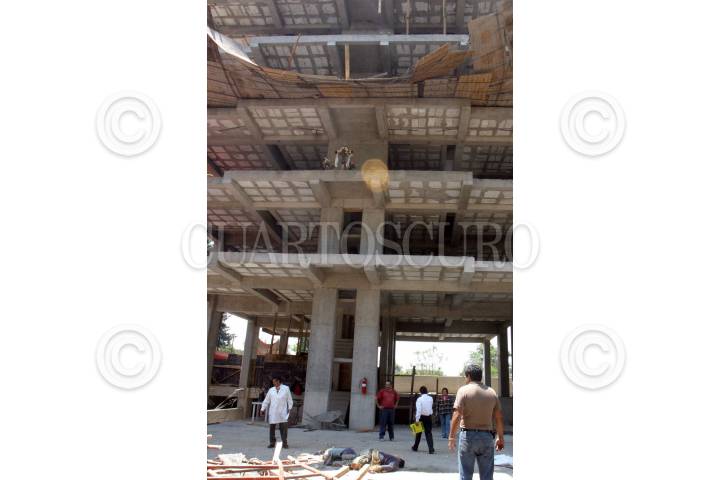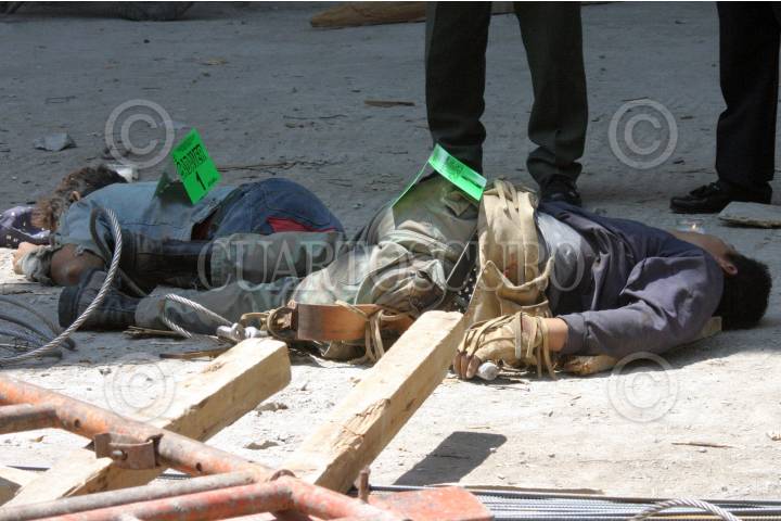MÉXICO, D.F., 05MAYO2007.- Macario Pedroza de 25 años y Antonio Castro de 20, ambos albañiles murieron al caer de un cuarto piso de una obra que esta en construcción, en Periférico 1940 en la colonia Tlacopal, la desgracia se sucitó cuando terminaban de amarrar la varilla de una loza a unos minutos de terminar su turno. FOTO: PEDRO MARRUFO/CUARTOSCURO.COM