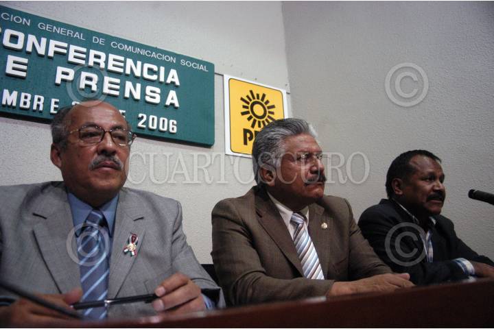 MÉXICO D.F. 21DICIEMBRE2006.- El diputado José Antonio Almazán, Adrian Pedroza y Alejandro Sánchez, durante su conferencia de prensa en la cámara de diputados donde se menciono que el aumento al salario es una burla para el trabajador. FOTO: GUILLERMO PEREA/CUARTOSCURO.COM