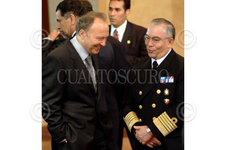 MEXICO, D.F., 30MARZO2005.- José Luis Soberanes, presidente de la CNDH, Ramón Martín Huerta, secretario de seguridad Pública Federal, Santiago Creel, secretario de Gobernación, Marco Antonio Peirot, secretario de Marina y Ricardo Gerardo Clemente Vega, secretario de la Defensa, durante la ceremonia de Incorporación de México al Protocolo Facultativo de la Convención Contra Tortura, en la residencia de los Pinos. FOTO: Moisés Pablo/CUARTOSCURO.COM
