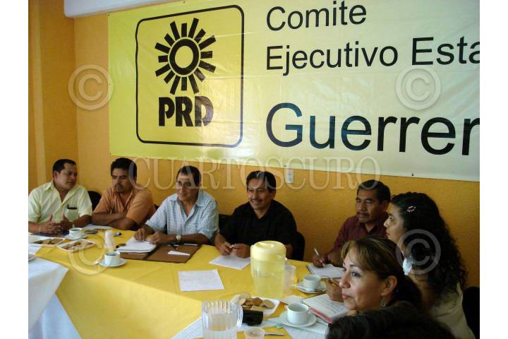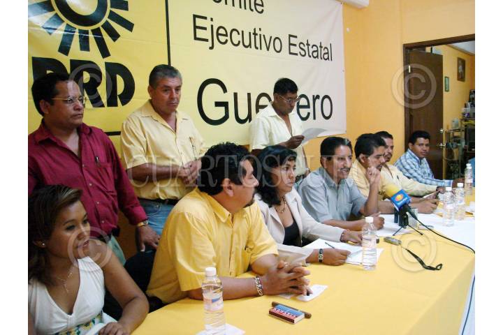 CHILPANCINGO, GUERRERO, 25SEPTIEMBRE2007.- Integrantes de la dirigencia estatal del PRD encabezados por su presidente Sebastian de la Rosa Pelaez, durante la conferencia de prensa donde fijaron su postura en torno a las declaraciones hechas por la dirigencia estatal del PRI del rompimiento que hacen con el gobierno del estado, asi como del caso del ex funcionario municipal Humberto Najera que se encuentra recluido en el CERESO capitalino acusado por delitos electorales. FOTO: OSCAR ALVARADO/CUARTOSCURO.COM