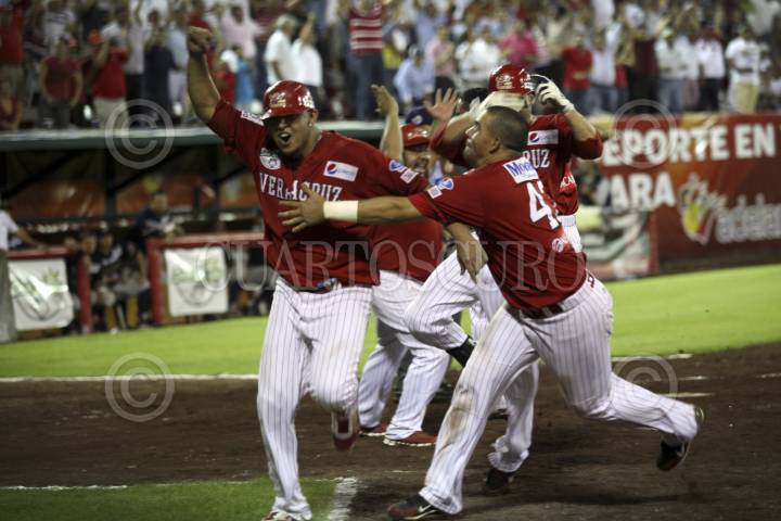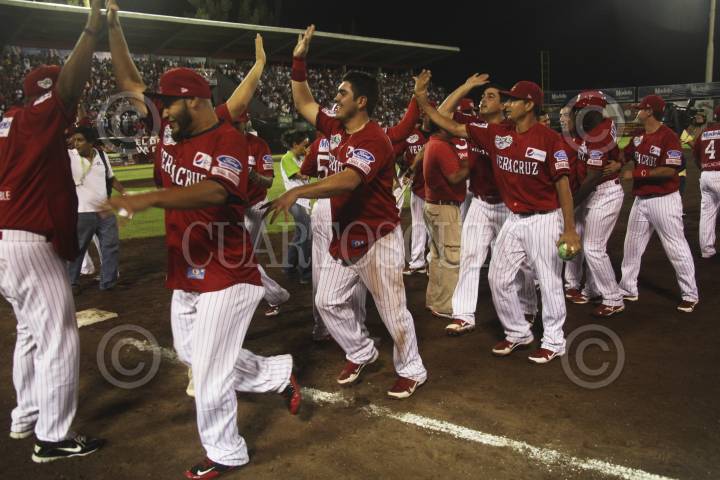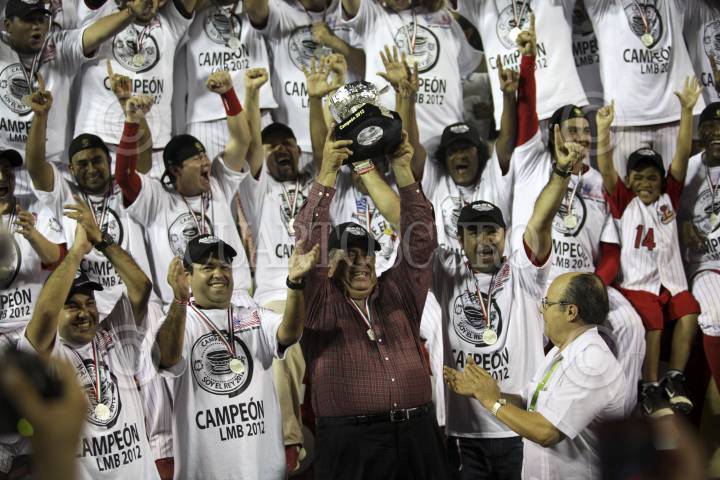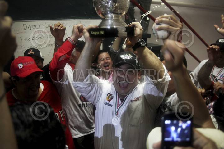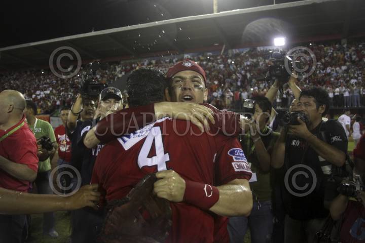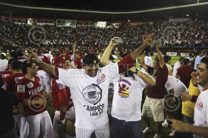BOCA DEL RÍO, VERACRUZ., 29AGOSTO2012.- Los Rojos del Águila de Veracruz derrotaron a Rieleros de Aguascalientes y después de 42 años consiguen su sexto título en la historia de la Liga Mexicana de Béisbol de la mano del manager veracruzano Pedro Meré. FOTO: FÉLIX MÁRQUEZ /CUARTOSCURO.COM
