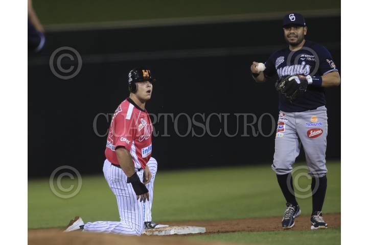 HERMOSILLO, SONORA, 22OCTUBRE2016.- Marco Carrillo pitcher abridor de Yaquis pone fuera a Roberto Ramos en un revire a segunda base , durante el partido2 de béisbol entre Naranjeros de Hermosillo vs Yaquis de Obregon. Temporada 2016 2017 de la Liga Mexicana del Pacifico. FOTO: LUIS GUTIÉRREZ /NORTE PHOTO /CUARTOSCURO.COM