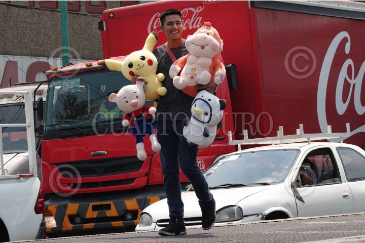 Un joven vende peluches de animales en Calzada Ermita Iztapalapa