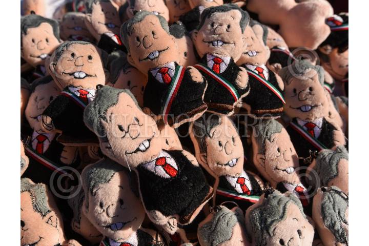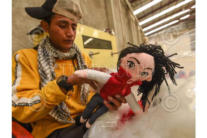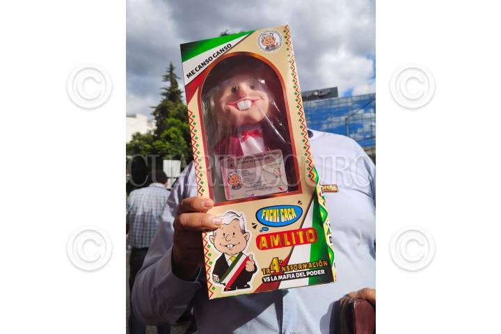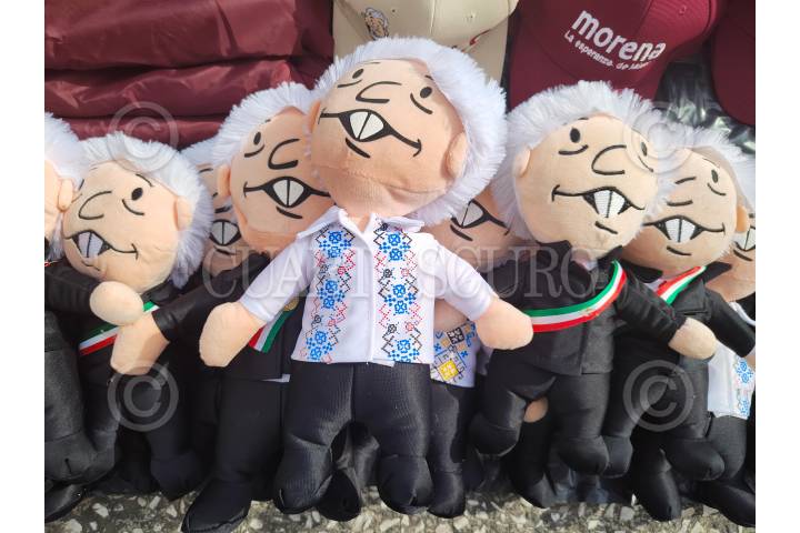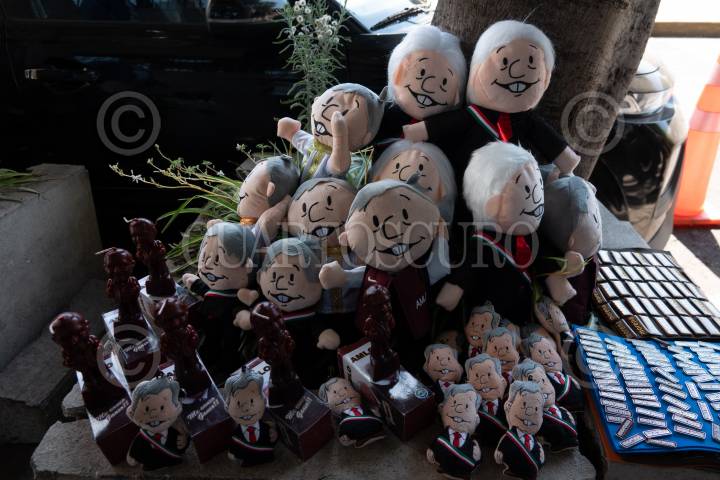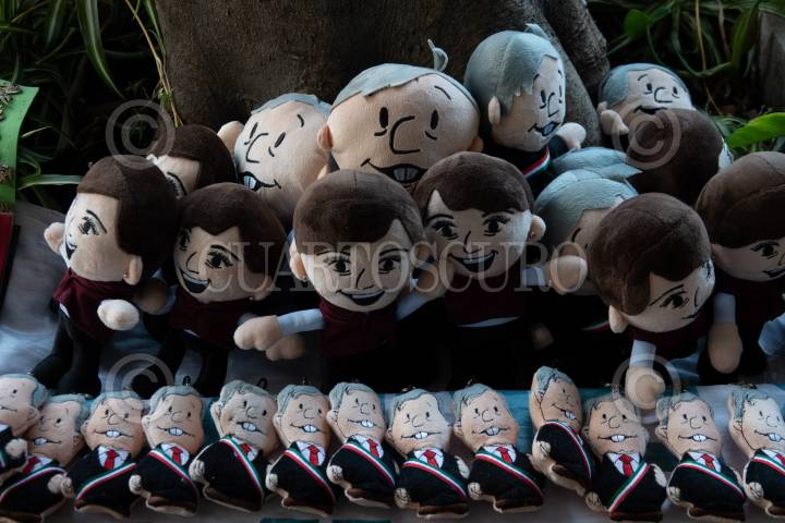 CIUDAD DE MÉXICO, 10SEPTIEMBRE2023.- Peluches de Andrés Manuel López Obrador, presidente de México, afuera de la Tercera Sesión Ordinaria de Morena FOTO: GRACIELA LÓPEZ /CUARTOSCURO.COM
