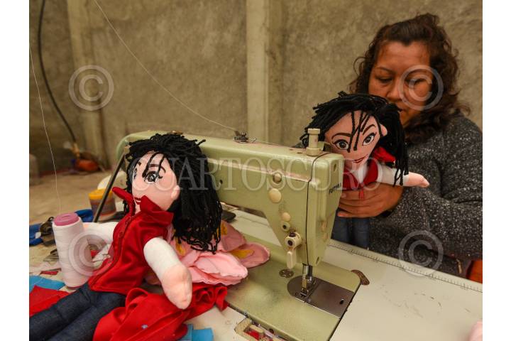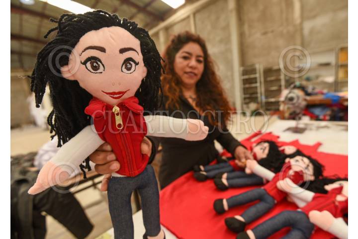 Peluches en venta afuera de la CEN de Morena de la candidata por el Estado de México Delfina Gómez y del presidente de México Andrés Manuel López Obrador