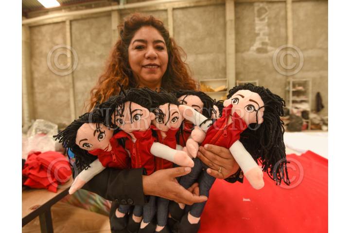 Accesorios como llaveros, muñecos de peluche de Delfina Gómez y AMLO fueron vendidos mientras se realizaba el registro de Delfina Gómez como candidata para la gubernatura del periodo 2023-2029 por la coalición “Juntos Hacemos pa Historia por el Estado de México”.