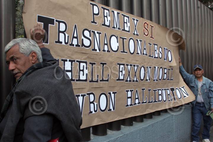 México D.F., a 6 de Febrero de 2008.- Decenas de perredistas capitalinos acudieron a protestar en las afueras de las oficinas centrales de PEMEX. FOTO: VICTORIA VALTIERRA/CUARTOSCURO.COM