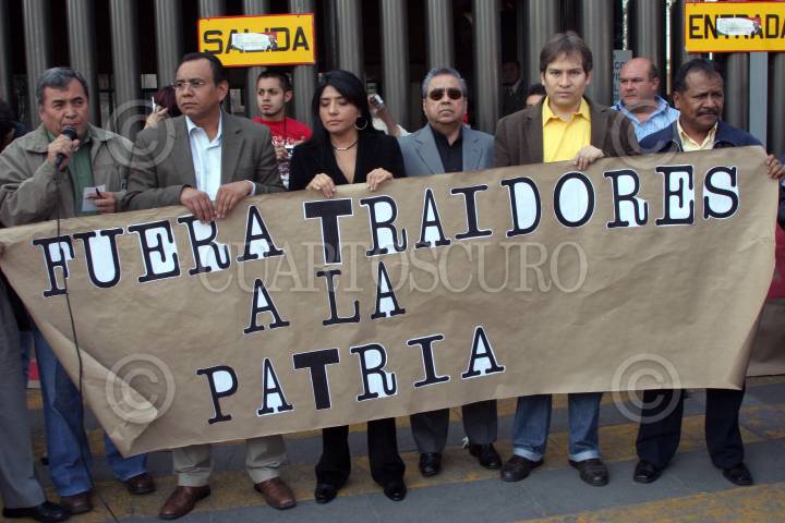 México D.F., a 6 de Febrero de 2008.- Perredistas encabezados por Alejandra Barrales, clausuraron de manera simbolica las oficinas centrales de PEMEX. FOTO: VICTORIA VALTIERRA/CUARTOSCURO.COM