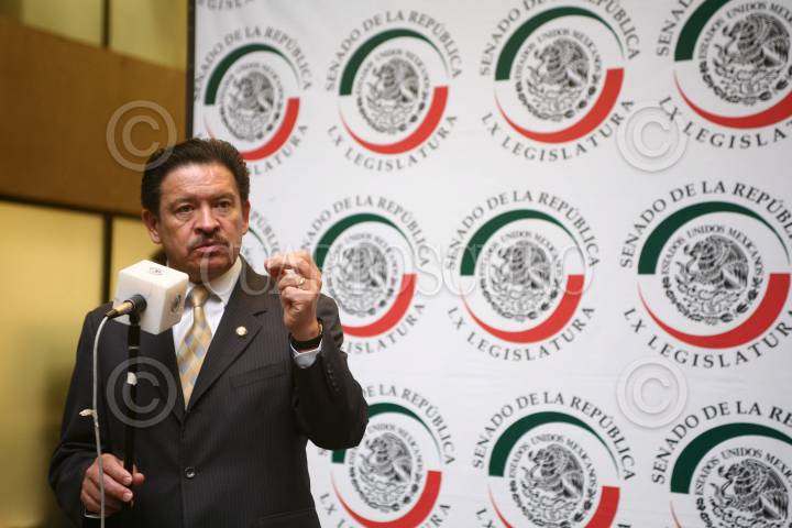 MÉXICO, D.F., 17MARZO2009.- Carlos Navarrete, coordinador de los senadores perredista durante la conferencia de prensa que realizó en el senado. FOTO: CUARTOSCURO.COM