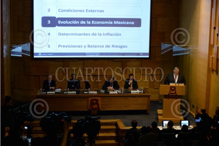 MÉXICO, D.F., 19MAYO2015.- El gobernador del Banco de México, Agustín Cartens, dijo que los más probable es que persista la tendencia a la baja debido a la caída en la plataforma de producción de Pemex y la menor inversión extranjera. El titular de Banxico presento el informa de inflación del primer trimestre del año. FOTO: ISABEL MATEOS /CUARTOSCURO.COM