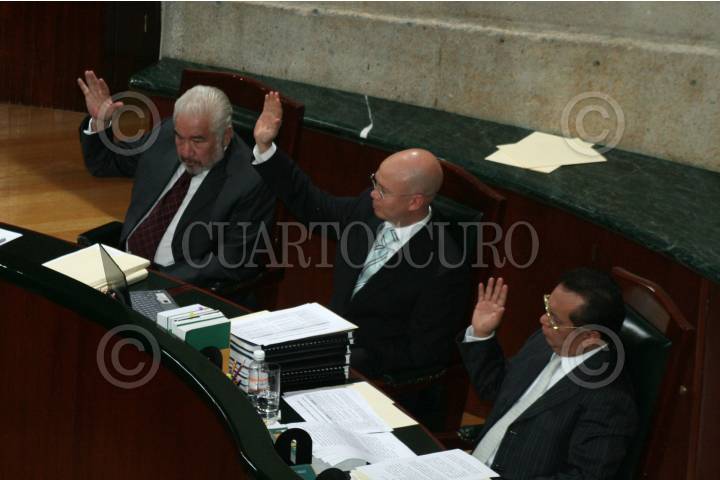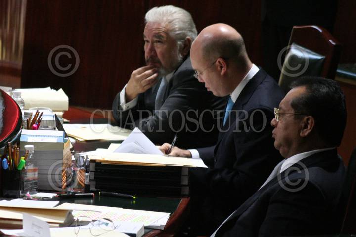 MÉXICO, D.F. 27DICIEMBRE2006.- Los magistrados Alejandro Luna Ramos, Salvador Olimpo Nava y Pedro Eteban Penagos durante la sesión donde se discute el caso Hank Rhon, aspirante a la gobernatura del PRI en Baja California. FOTO: PAOLA HIDALGO/CUARTOSCURO.COM