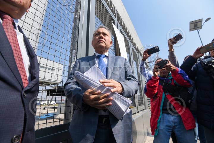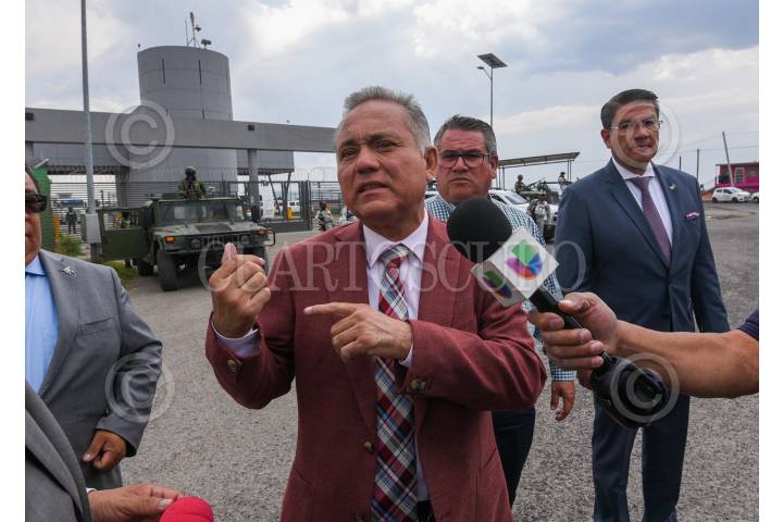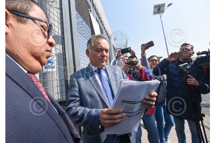 El abogado José Gabriel Martín Hernández Rodríguez, defensa de Héctor Luis “El Güero” Palma llegó a las 9:30 hrs de la mañana al Centro Federal de Readaptación Social núm. 1 “El Altiplano”, en espera de que se cumpla la libertad de su defendido.
