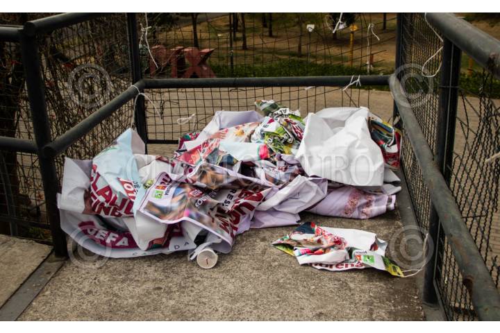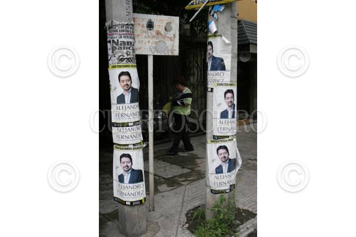 MÉXICO, D.F.,02JULIO2012.- La Secretaría de Desarrollo Urbano y Vivienda (SEDUVI) estima retirar cerca de 200 toneladaas de propaganda política que aun permanece en el moviliario urbano, aunque el Gobierno del D.F. ha retirado ya la que se encuentra en algunas vías primaras. FOTO: JUAN PABLO ZAMORA /CUARTOSCURO.COM