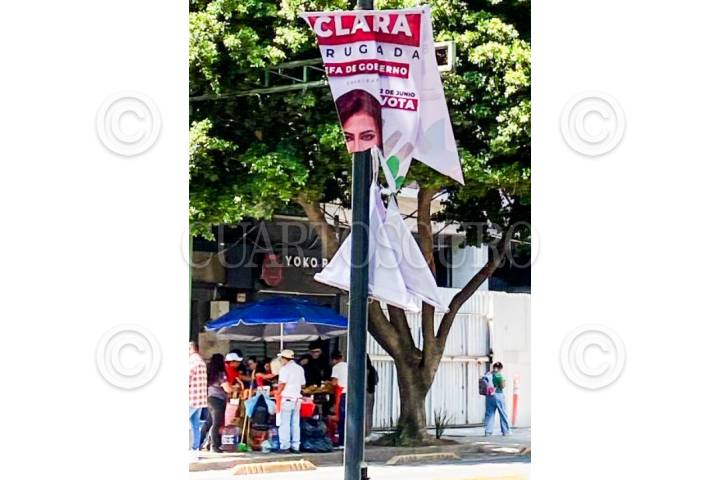CIUDAD DE MÉXICO. 14MARZO2024.- Los pendones de la campaña de Clara Brugada Molina, candidata de Morena, PTy Verde Ecologista a la jefatura de Gobierno de la Capital, fueron arrancados y rotos en la Benito Juárez, concretamente en avenida de los Insurgentes. FOTO: CUARTOSCURO.COM