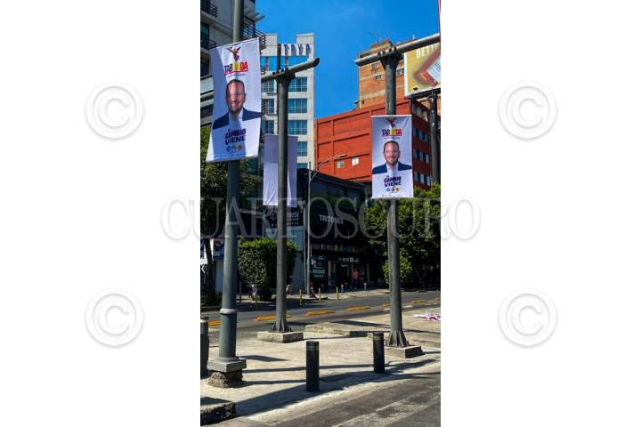 CIUDAD DE MÉXICO, 07MARZO2024.- Puentes de avenida Ejército Nacional han sido tapizados de pendones con la imagen del candidato a la Jefatura de Gobierno, Santiago Taboada, esto a unos días de arrancar oficialmente las campañas. FOTO: MOISÉS PABLO/CUARTOSCURO.COM