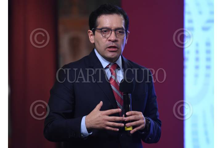 Luis Godoy Rueda, director de la Unidad de Inteligencia Económica Global de la Secretaría de Economía, durante su participación en la conferencia.