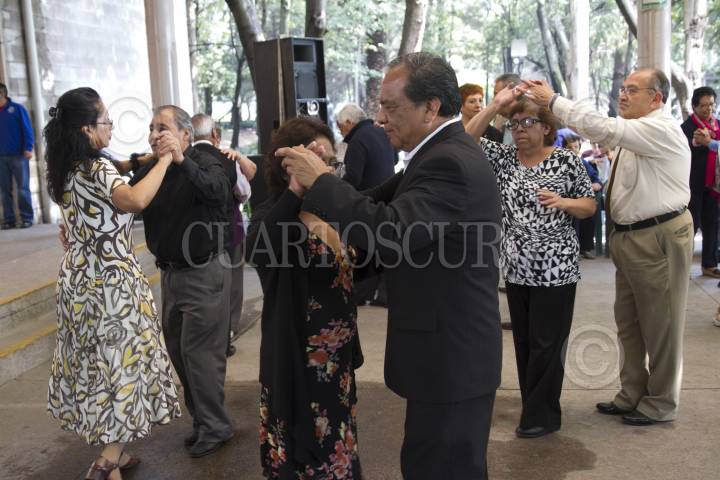 CIUDAD DE MÉXICO, 28JULIO2016.- Parejas de la tercera edad bailan al son del danzón en el Jardín del Adulto Mayor, en el marco de la entrega de tarjetas de pensión alimentaria por parte de autoridades de la secretaría de Desarrollo Social de la Ciudad de México. FOTO: MOISÉS PABLO /CUARTOSCURO.COM