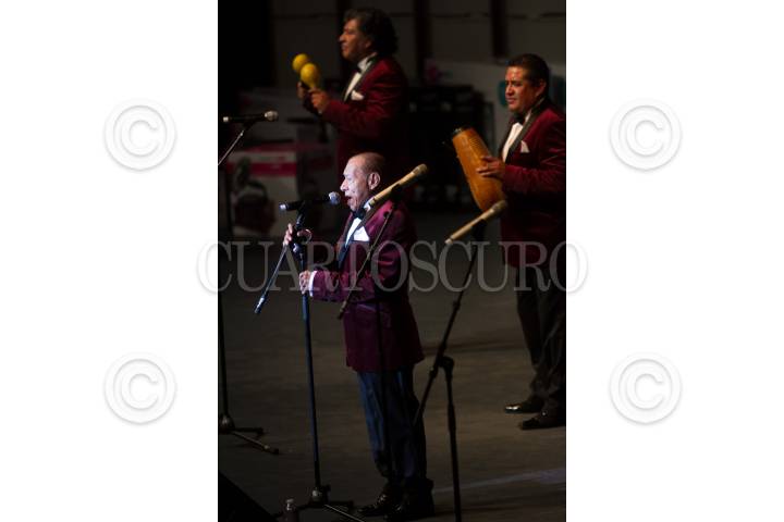 CIUDAD DE MÉXICO, 12FEBRERO2018.- Andrés Terrones fundador de la legendaria Sonora Santanera fue el encargado de amenizar la ceremonia de entrega de seis mil tarjetas de pensión alimentaria en el Auditorio Nacional. FOTO: MOISÉS PABLO /CUARTOSCURO.COM
