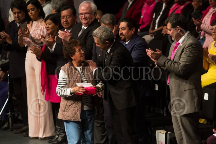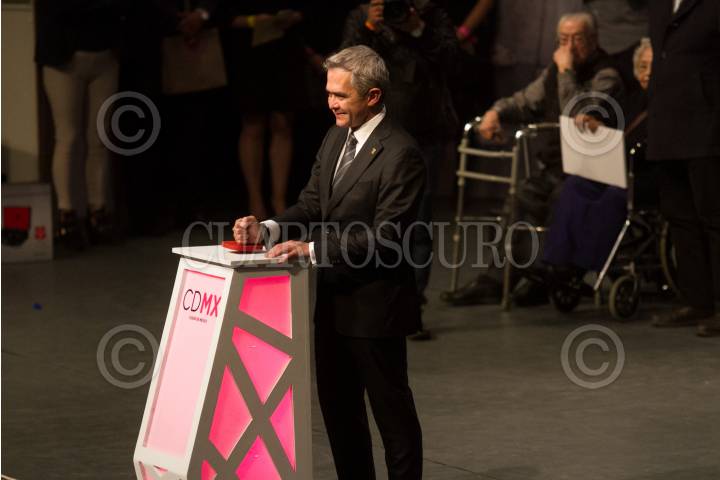 CIUDAD DE MÉXICO, 12FEBRERO2018.- Miguel Ángel Mancera, Jefe de Gobierno, encabezó la entrega de seis mil tarjetas para adultos mayores de pensión alimentaria en el Auditorio Nacional. FOTO: MOISÉS PABLO /CUARTOSCURO.COM
