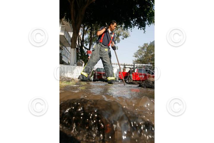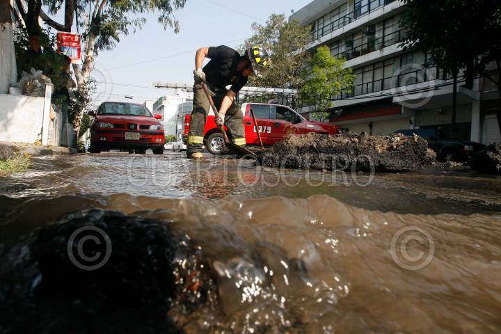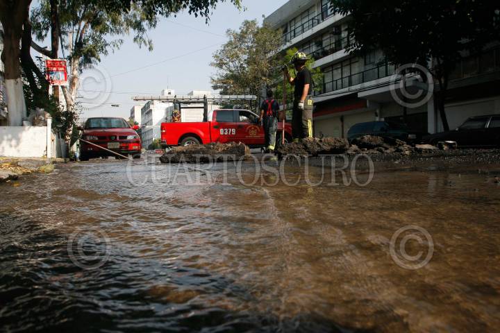 MÉXICO D.F., 12DICIEMBRE2009.- Fuga de Agua Potable que se registró en la calle Pensilvania frente al 237 en la colonia Nápoles perímetro de la Delegación Benito Juárez. FOTO: LUIS CARBAYO/CUARTOSCURO.COM