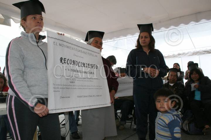 MÉXICO, D.F. 06OCTUBRE2006.- Organizaciones como el Movimiento Urbano Popular y la UPRES conmemoraron el Día Internacional sin Techo, lo celebraron entregando el Premio a la Peor Vivienda a empresas constructoras como Ara y Bribiesca y Sahagún Constructores. FOTO: PAOLA HIDALGO/CUARTOSCURO.COM