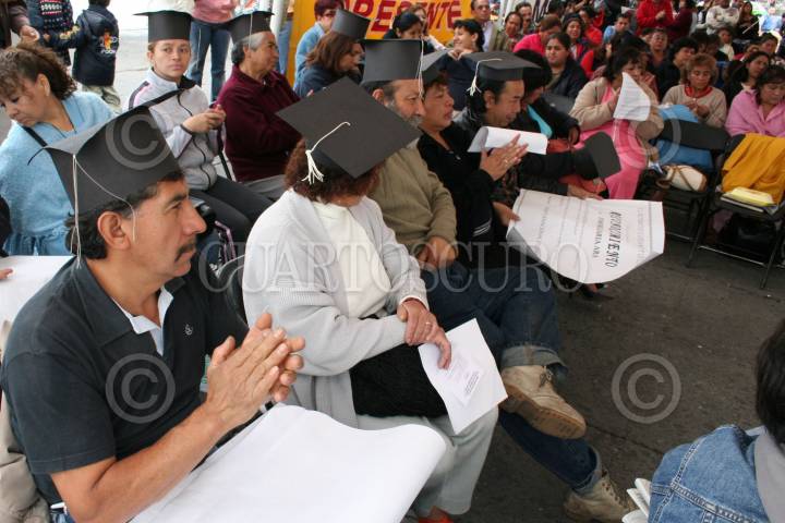 MÉXICO, D.F. 06OCTUBRE2006.- Organizaciones como el Movimiento Urbano Popular y la UPRES conmemoraron el Día Internacional sin Techo, lo celebraron entregando el Premio a la Peor Vivienda a empresas constructoras como Ara y Bribiesca y Sahagún Constructores. En la imagen, integrantes del jurado popular. FOTO: PAOLA HIDALGO/CUARTOSCURO.COM