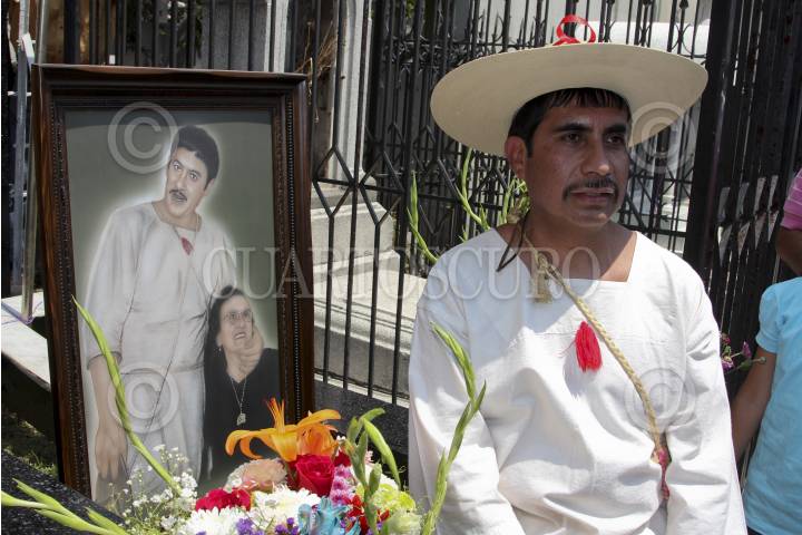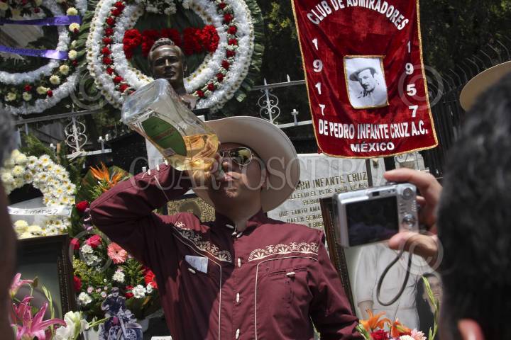 MÉXICO, D.F., 15ABRIL2012.- Cientos de personas procedentes del pais y otras partes del mundo, acudieron al panteón Jardín para celebrar el 55 aniversario luctuoso del Ídolo de México Pedro Infante donde la gente canto, bebió y disfruto de las canciones y anécdotas que el artista dejo de legado. FOTO: ENRIQUE ORDÓÑEZ /CUARTOSCURO.COM