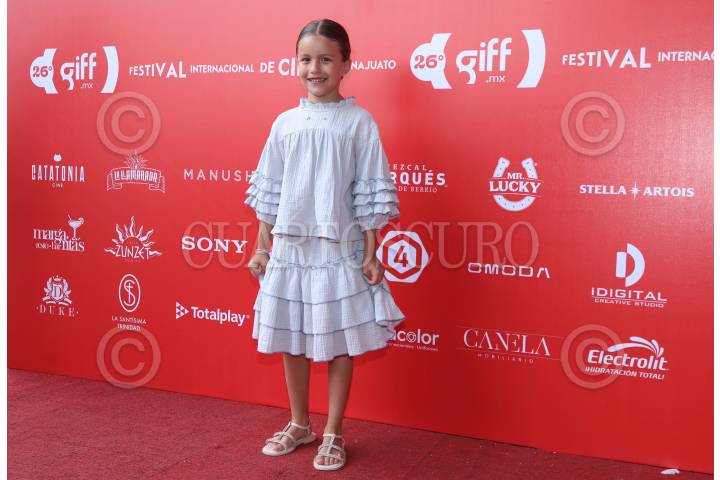 Olivia a su paso por la alfombra roja de la muestra especial “Perdidos en la noche”, del director Amat Escalante, dentro de las actividades del Festival Internacional de Cine Guanajuato (GIFF) en su edición número 26.