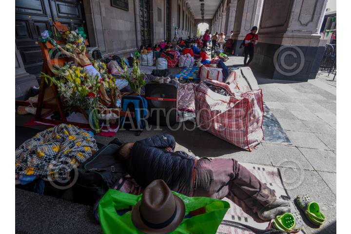 TOLUCA, ESTADO DE MÉXICO, 16FEBRERO2025.- Cientos de peregrinos arriban a la capital mexiquense como parte de la LXXXVII Peregrinación Diocesana al Tepeyac de la Arquidiócesis de Toluca, provenientes de diversos municipios este día descansan en la zona centro y mañana lunes a muy temprana hora retoman su camino después de escuchar misa y ser bendecidos en la Catedral de Toluca. FOTO: CRISANTA ESPINOSA AGUILAR /CUARTOSCURO.COM