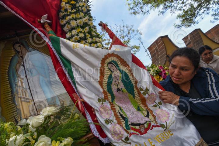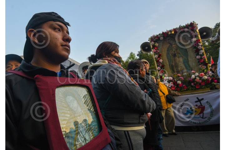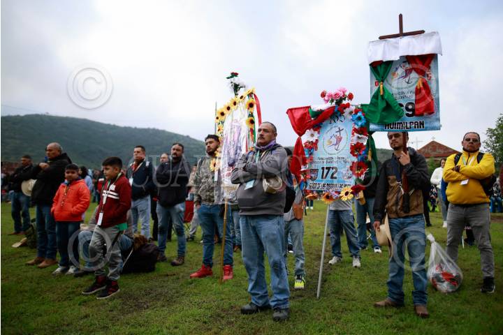 HUIMILPAN, QUERÉTARO, 20JULIO2025.-En la cabecera municipal de Huimilpan se llevó a cabo una misa para conmemorar el arranque de la peregrinación 2025 hacia el Tepeyac. Cientos de peregrinos se congregaron desde la madrugada para comenzar su movilización con dirección a la Ciudad de Méxicos. FOTO: CÉSAR GÓMEZ/CUARTOSCURO