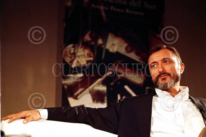 El escritor español Arturo Pérez-Reverte presentó ayer por la tarde su libro titulado "La Reina del Sur", obra donde revela los obscuros secretos del narcotráfico en México y España, a través de la protagonista "Teresa Mendoza", una mujer de Sinaloa cuya aventura comienza con el asesinato de su novio. Teresa huye a España y regresa a Sinaloa luego de 12 años para levantar un imperio clandestino de contrabando de cocaína en Europa. FOTO: Susana Navrrete/CUARTOSCURO.COM