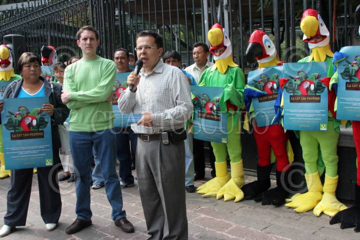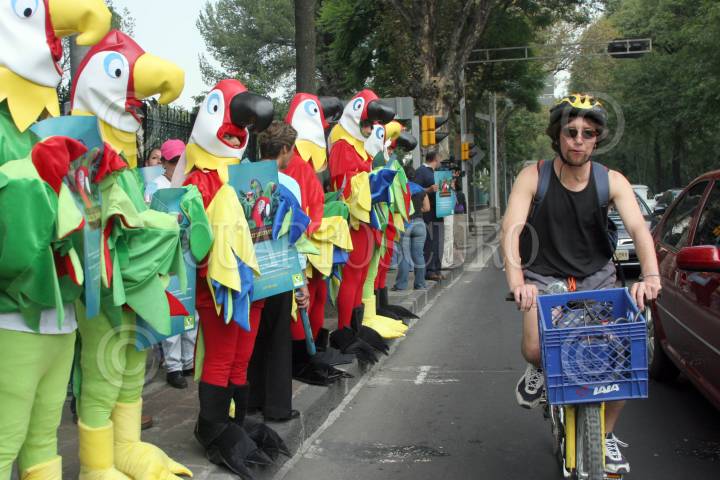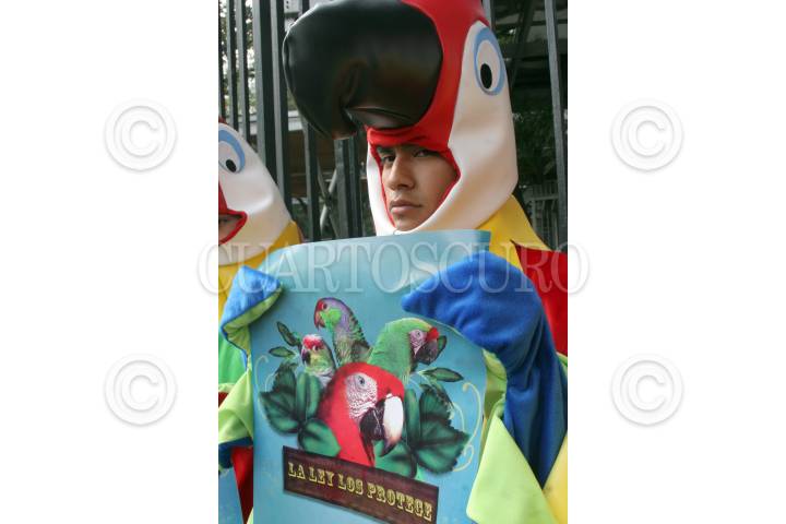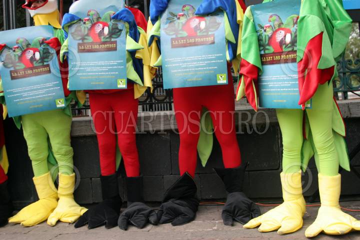 MÈXICO, D.F., 23JULIO2008.- Integrantes del Partido Verde Ecologista de México, realizaron una protesta en paseo de la reforma. 22 Especíes de pericos, loros y guacamayas estan en peligro de desaparecer. "No compres pericos silvestres y denuncia el tráfico Ilegal". FOTO: VICTORIA VALTIERRA/CUARTOSCURO.COM
