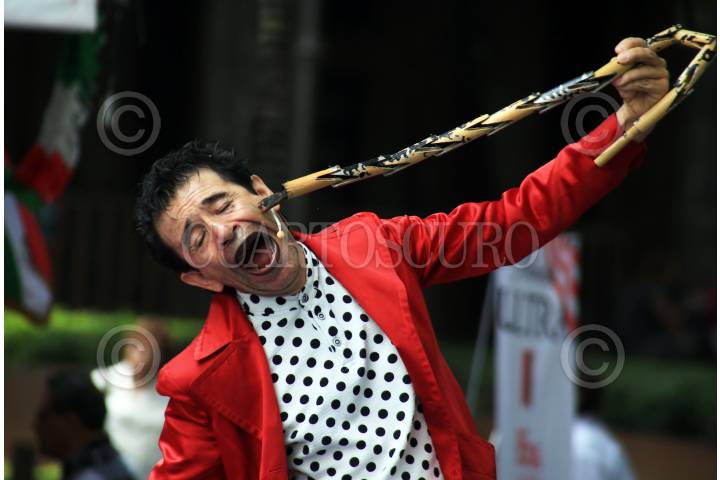 CUERNAVACA, MORELOS, 23SEPTIEMBRE2018.- Espectáculo de Perico el Payaso Loco en la plaza Emiliano Zapata. El artista utiliza juguetes mexicanos tradicionales en su presentación. FOTO: MARGARITO PÉREZ RETANA /CUARTOSCURO.COM
